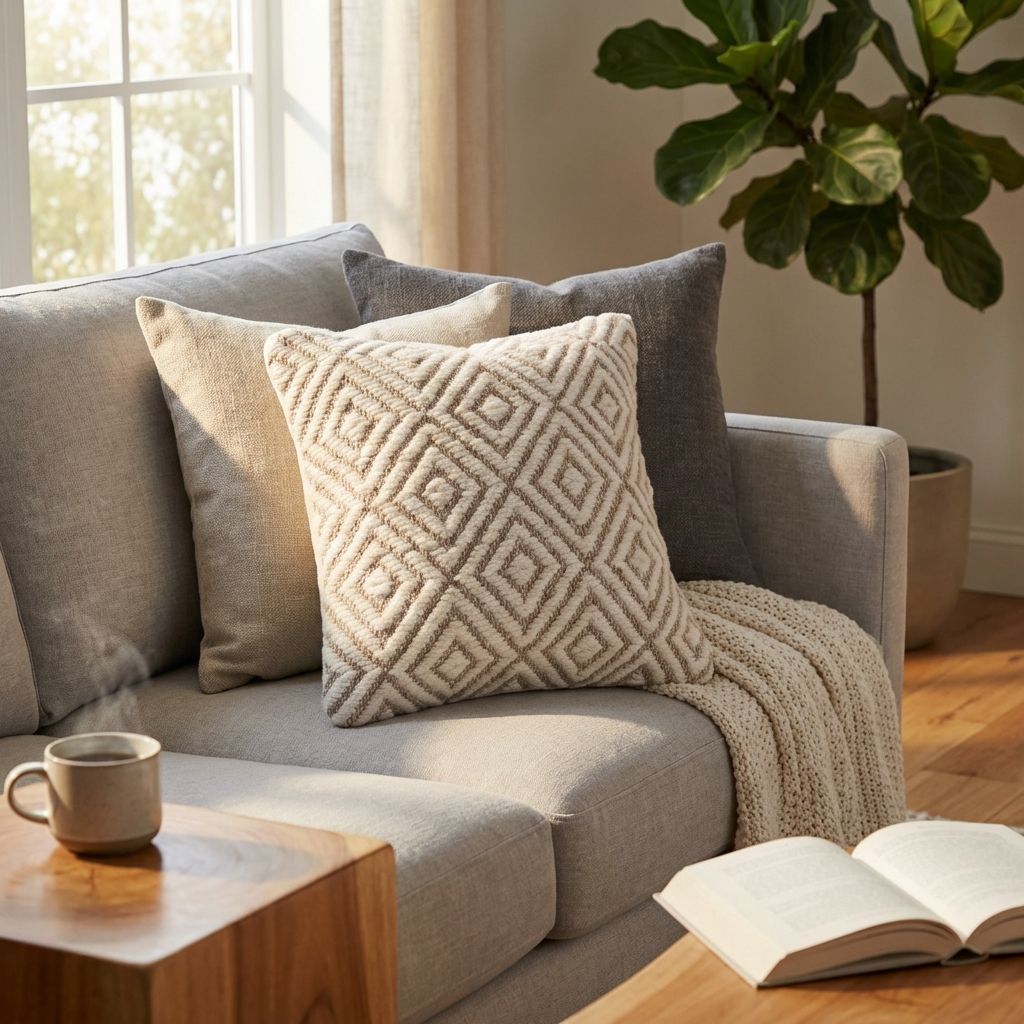 Cuscino decorativo con federa in lana, caratterizzato da texture materiche e lavorazioni in rilievo. Aggiunge un tocco di calore e personalità a divani, poltrone e letti. Il design naturale e neutro lo rende ideale per ogni ambiente.
