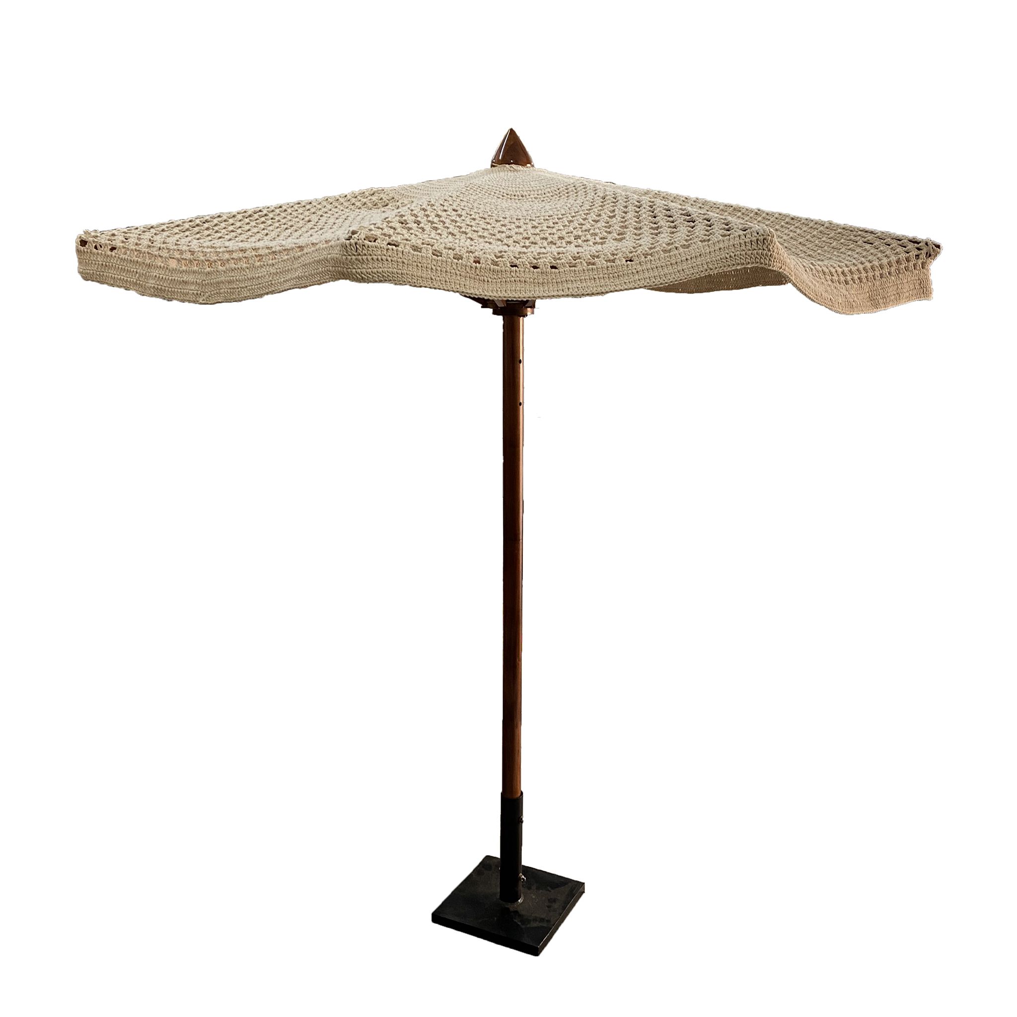 Questo ombrellone è molto più di una semplice copertura solare: è un elemento d’arredo capace di trasformare ogni spazio outdoor in un angolo di charme autentico. Il suo punto di forza è la copertura in cotone realizzata con una raffinata lavorazione macramè che dona all’ombrellone un’anima calda e materica, dal gusto naturale e bohémien. Il puntale superiore, laccato e appuntito, è un dettaglio distintivo che impreziosisce l’insieme con un tocco decorativo inaspettato. La base in metallo garantisce stabilità e resistenza, rendendolo adatto non solo per ambienti privati ma anche per spazi contract come lounge, beach bar, terrazze e resort. Aperto, accoglie l’ombra con naturale eleganza; chiuso, diventa un elemento scultoreo che arreda anche quando non è in uso. Un ombrellone che unisce estetica e funzionalità, per chi desidera vivere l’esterno con stile, sotto una luce morbida e avvolgente.